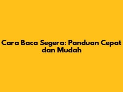 Cara Baca Segera: Panduan Cepat Dan Mudah