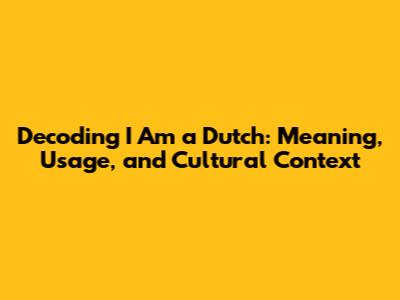 Decoding 'I Am A Dutch': Meaning, Usage, And Cultural Context