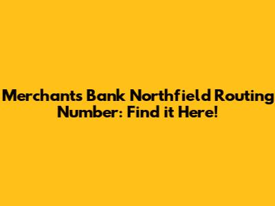 Merchants Bank Northfield Routing Number: Find It Here!