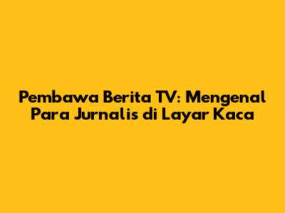 Pembawa Berita TV: Mengenal Para Jurnalis Di Layar Kaca